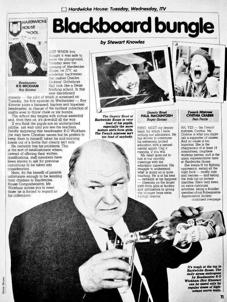 Hardwicke House is a seven-episode ITV sitcom produced by Central Independent Television. It was originally produced in the beginning of 1987. It was so negatively received that only the first two episodes were transmitted.